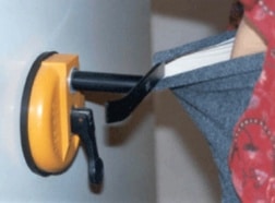 Een grote zuignap met daarop gemonteerd diverse tools om uw kleding aan te trekken en naar beneden te trekken. U kunt deze dus overal mee naartoe nemen en de zuignap bevestigen op een glad oppervlakte zoals een muur, deur, etc. Door de hendel naar beneden te drukken, bevestigt u het aankleedhulpmiddel stevig op de ondergrond.