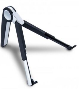 Laptopstandaard – multi-functioneel (ook te gebruiken als toetsenbord verhoger/schuin of als boekenstandaard). Kies een lichtgewicht standaard die in hoogte (hoek) verstelbaar én inklapbaar is, dus gemakkelijk mee te nemen.