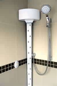 In plaats van afdrogen met een handdoek kunt u voor deze lichaamsföhn gaan staan om u volledig af te drogen.