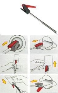 Telescopisch, met plak- of magneetstrip voor het oprapen van voorwerpen zonder te hoeven bukken. De telescopische plakstik kan ook gebruikt worden voor het uitnemen en insteken van een parkeerkaart vanuit de auto voor het openen van de slagboom. Zowel in duo (plak én magneet) als losse plakstik of losse magneetstik verkrijgbaar.