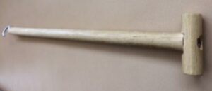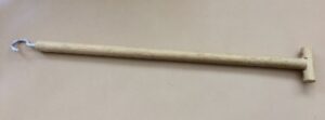 Eigen ontworpen en gemaakte houten stokje (bijvoorbeeld: 32 cm) met haakje aan uiteinde en andere kant een dwarsstokje voor betere grip.